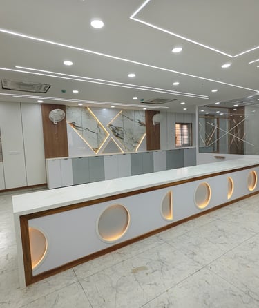 Transforming commercial interiors into sophisticated environments that inspire creativity and productivity while reflecting the brand's identity and values through thoughtful design elements and high-quality finishes.